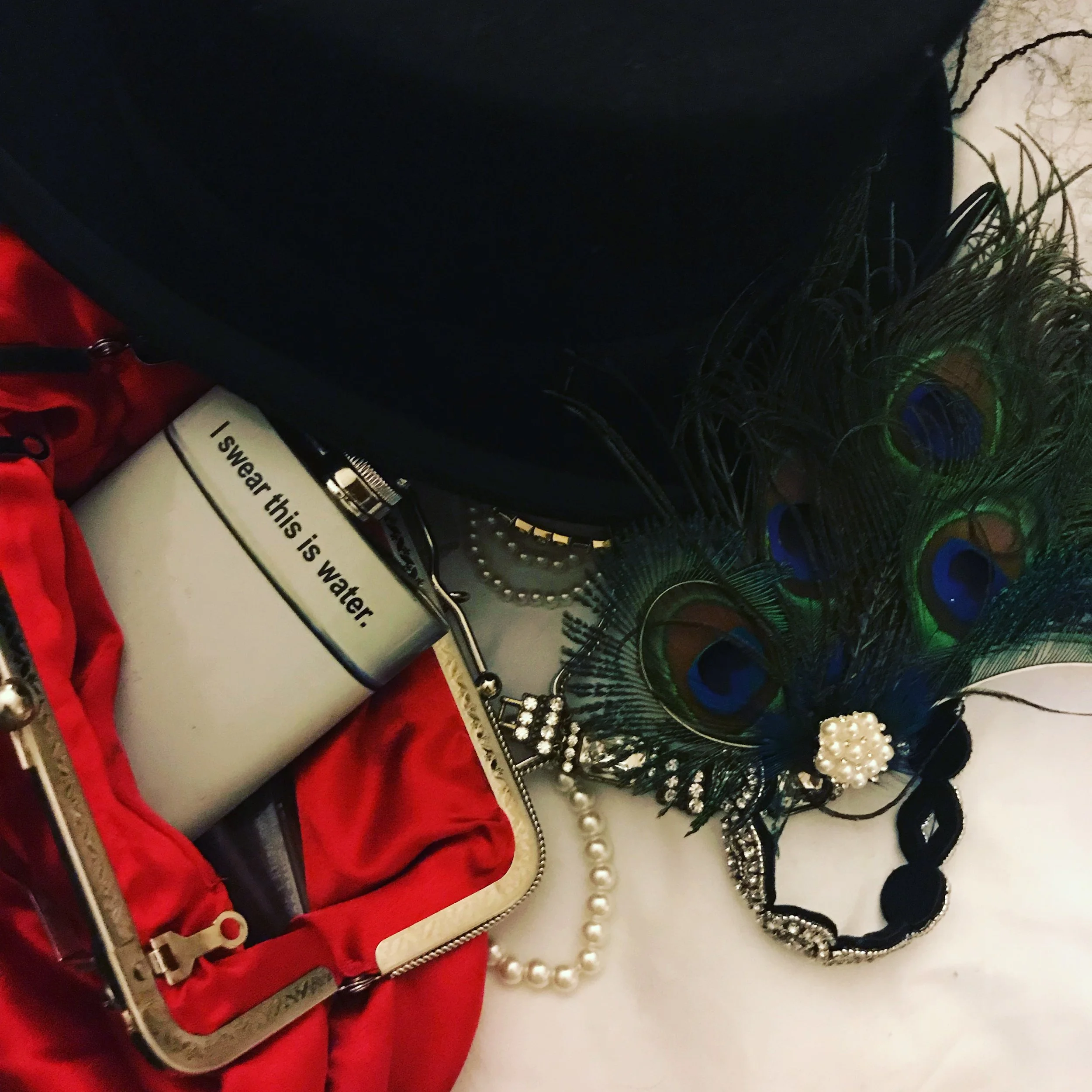 The look consisted of diamond and pearls, peacock feathers and satin. Oh yes, and my flask. Because every lady needs a good flask😉