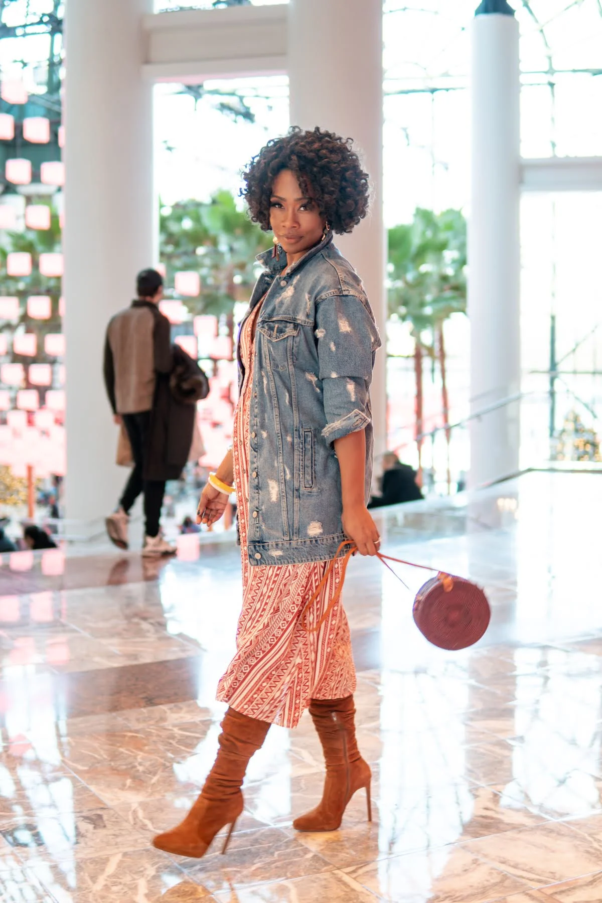 Now I used to have no shame about looking crazy while I did my holiday shopping. I knew I was going to be elbow deep in madness, so I had to be ready. Then one day last year during the holidays I rolled past a mirror and actually saw myself. My outfit looked so much more different under the glare of florescent mall lighting than it did when I left home. Yes, I knew that nothing I had on matched. Yes I knew I had on red jogging pants with pony haired Uggs. Yes I knew that my chunky crochet hat was a little loose and a little peesy. Yes, I knew I did not have on a stitch of makeup. But I thought I was serving Brooklyn style hobo chic realness. The mirror in the mall showed me what I was really serving: Mr. snuffaluffagus meets Mrs. Roeper type shenanigans. So I have decided to step my game up. After all, It is not hard. You don’t have to do much to look decent, just pick a cute dress, some nice shoes, fill in your brows and go!